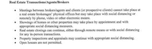Attached is the breakdown of the executive order from the Governor designating real estate as essential and outlining how we should all be conducting business (p.11) Exhibit-A-to-Emergency-Order-17-List-of-Essential-Businesses-(1)