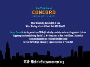 In Town Concord is hosting a mini tour (30 minutes) and a brief presentation on the exciting projects in downtown Concord following the City’s $12M + investment in Main Street.