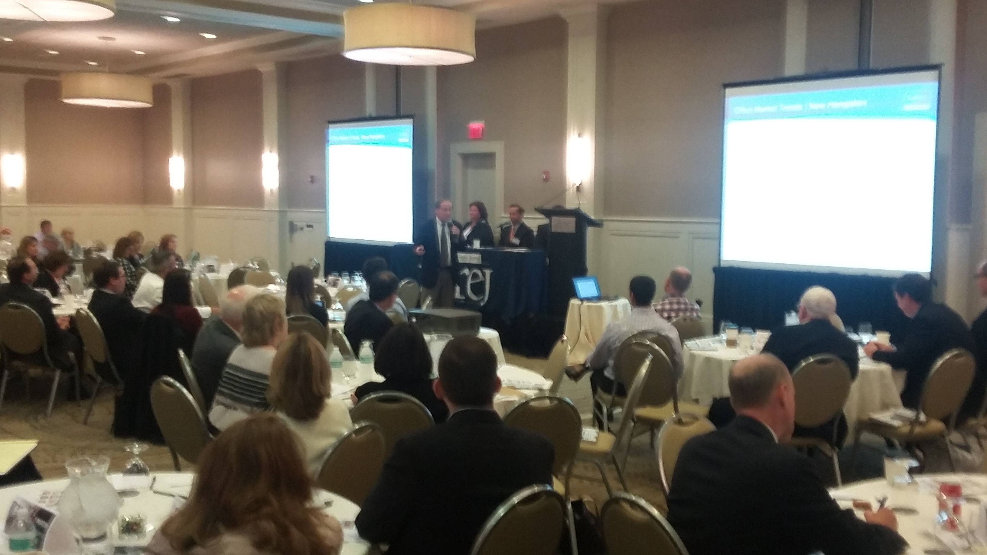 Chris Norwood of NAI Norwood Group participated in the Real Estate Update/Trends, as did Beth Chea from Wells Fargo on Financing availability. In the photo, David Choate of Colliers International is presenting a market overview regarding what happening in New Hampshire. Thanks to all members and attendees who participated and made the event a professional and positive educational experience.
